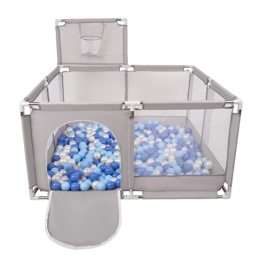 parc bébé avec balles plastiques aire de jeu pliable basket, Gris:babyblue/blue/perle, 200 balles