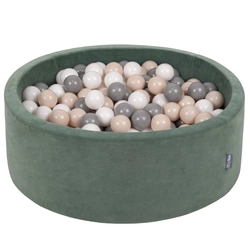 KiddyMoon Velours Piscine à Balles ∅7Cm pour Bébé Rond Fabriqué en EU, vert forêt, 90x30/SANSballes