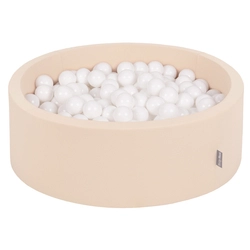 KiddyMoon Piscine à Balles ∅ 7Cm pour Bébé Rond Fabriqué En UE, beige: blanc, 90x30cm/200 balles