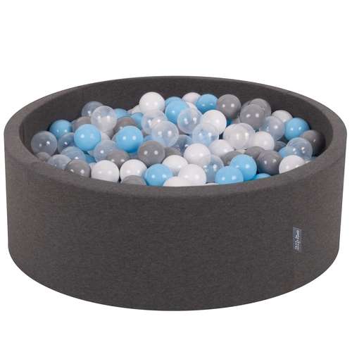 KiddyMoon Piscine À Balles Grande Rond pour Bébé, Fabriqué en UE, gris foncé: gris/blanc/transparent/babyblue, 120x30cm/1000 balles