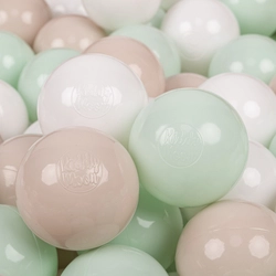 KiddyMoon Balles Colorées Plastique ∅7cm pour Piscine Enfant Bébé Fabriqué en EU, beige pastel/blanc/menthe, 100 Balles/7cm