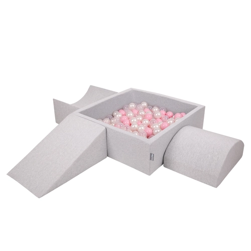 KiddyMoon Aire De Jeux en Mousse avec Carré Piscine À Balles pour Enfants, gris clair: rose poudré/perle/transparent, Piscine (200 Balles) + Version 4