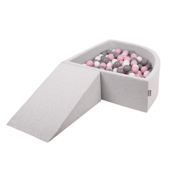 KiddyMoon Aire De Jeux en Mousse avec Quart Angulaire Piscine À Balles pour Bébé, gris clair: perle/gris/transparent/babyblue/menthe, Piscine (200 Balles) + Version 6