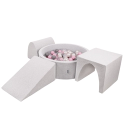KiddyMoon Aire De Jeux en Mousse avec Rond Piscine à Balles pour Enfants, gris clair: rose poudré/perle/transparent, Piscine (200 Balles) + Version 3