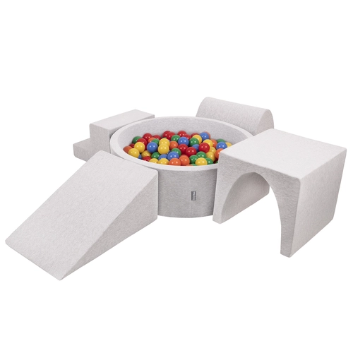 KiddyMoon Aire De Jeux en Mousse avec Rond Piscine à Balles pour Enfants, gris clair: jaune/vert/bleu/rouge/orange, Piscine (200 Balles) + Version 6