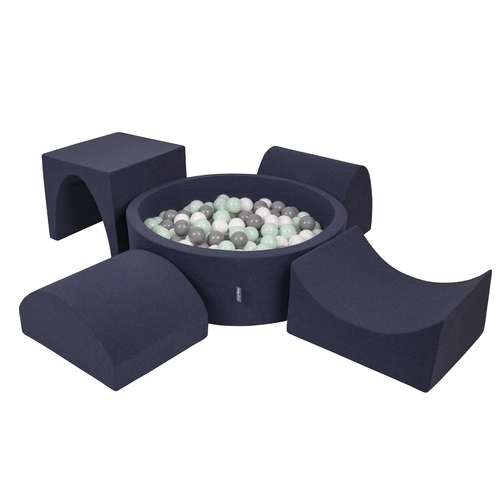 KiddyMoon Aire De Jeux en Mousse avec Rond Piscine à Balles pour Enfants, bleu foncé:blanc/gris/menthe, Piscine (200 Balles) + Version 5