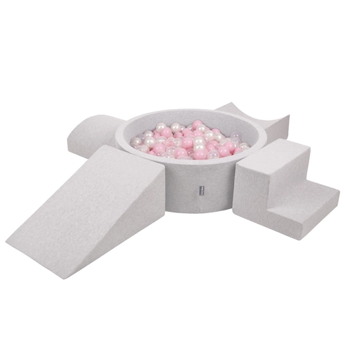KiddyMoon Aire De Jeux en Mousse avec Rond Piscine à Balles pour Enfants, gris clair: blanc/gris/menthe, Piscine (200 Balles) + Version 5
