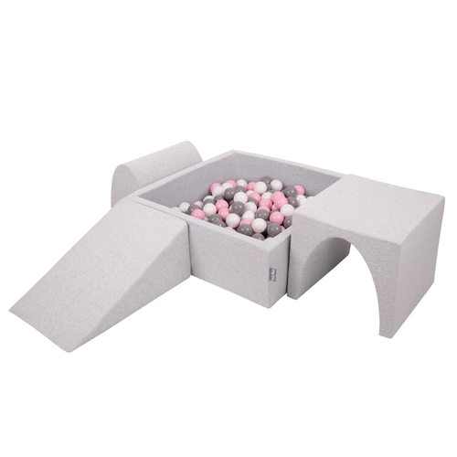 KiddyMoon Aire De Jeux en Mousse avec Carré Piscine À Balles pour Enfants, gris clair: blanc/gris/rose poudré, Piscine (100 Balles)+ Pente
