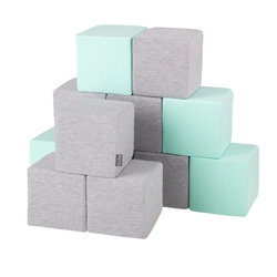 KiddyMoon blocs mous pour bébé cubes de construction en mousse, cubes: gris clair/menthe, 12 Pieces