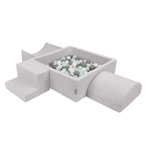 KiddyMoon Aire De Jeux en Mousse avec Rond Piscine à Balles pour Enfants, bleu foncé:perle/gris/transparent/babyblue/menthe, Piscine (100 Balles)+ Pente