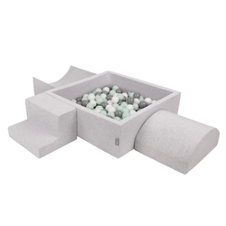 KiddyMoon Aire De Jeux en Mousse avec Carré Piscine À Balles pour Enfants, gris clair: perle/gris/transparent/babyblue/menthe, Piscine (300 Balles) + Version 5