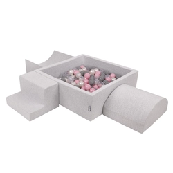 KiddyMoon Aire De Jeux en Mousse avec Rond Piscine à Balles pour Enfants, gris clair: perle/gris/transparent/rose poudré, Piscine (200 Balles) + Pente