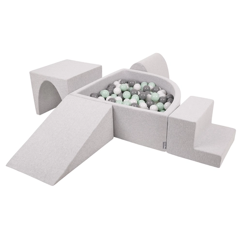 KiddyMoon Aire De Jeux en Mousse avec Quart Angulaire Piscine À Balles pour Bébé, gris clair: blanc/gris/menthe, Piscine (100 Balles)+ Pente