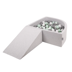 KiddyMoon Aire De Jeux en Mousse avec Quart Angulaire Piscine À Balles pour Bébé, gris clair: blanc/gris/menthe, Piscine (100 Balles)+ Pente