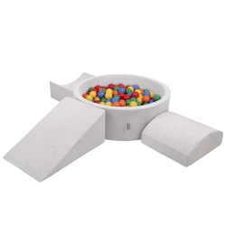 KiddyMoon Aire De Jeux en Mousse avec Rond Piscine à Balles pour Enfants, gris clair: perle/gris/transparent/rose poudré, Piscine (200 Balles) + Version 4