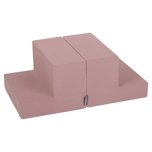 KiddyMoon Aire Velvet De Jeux en Mousse avec Rond Piscine à Balles pour Enfants, beige sableux: beige pastel/rose poudré/perle/rose foncé, Piscine (100 Balles)+ Pente