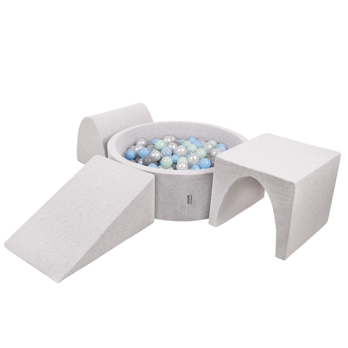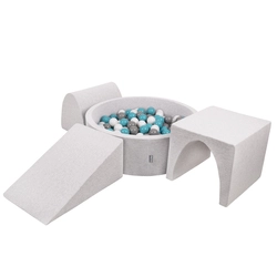 KiddyMoon Aire De Jeux en Mousse avec Rond Piscine à Balles pour Enfants, gris clair: gris/blanc/turquoise, Piscine (200 Balles) + Version 6