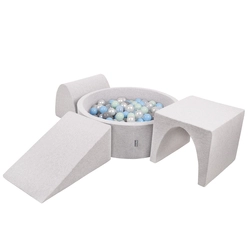 KiddyMoon Aire De Jeux en Mousse avec Rond Piscine à Balles pour Enfants, bleu foncé:perle/gris/transparent/babyblue/menthe, Piscine (200 Balles) + Version 6