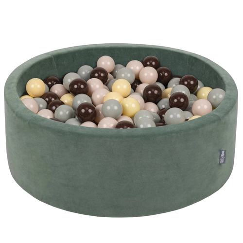 KiddyMoon Velours Piscine à Balles ∅7Cm pour Bébé Rond Fabriqué en EU, vert forêt: beige pastel/bleu pastel/jaune pastel/menthe, 90x30cm/200 balles