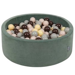 KiddyMoon Velours Piscine à Balles ∅7Cm pour Bébé Rond Fabriqué en EU, rose des sables: turquoise foncé/beige pastel/vert de gris/saumon, 90x30cm/200 balles