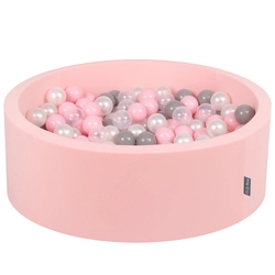 KiddyMoon Piscine à Balles ∅ 7Cm pour Bébé Rond Fabriqué En UE, gris clair:perle/rose poudré/argenté, 90x30cm/200 balles