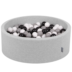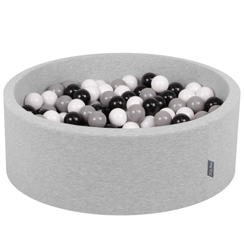 KiddyMoon Piscine à Balles ∅ 7Cm pour Bébé Rond Fabriqué En UE, gris clair:blanc/noir/argenté, 90x30cm/200 balles