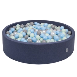 KiddyMoon Piscine À Balles Grande Rond pour Bébé, Fabriqué en UE, bleu foncé:vert cl/jaune/turq/orange/r.foncé/violet, 120x30cm/200 balles