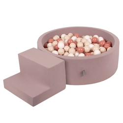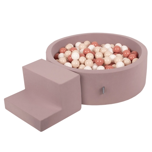 KiddyMoon Aire Velvet De Jeux en Mousse avec Rond Piscine à Balles pour Enfants, beige sableux: beige pastel/rose poudré/perle/rose foncé, Piscine (100 Balles)+ Pente