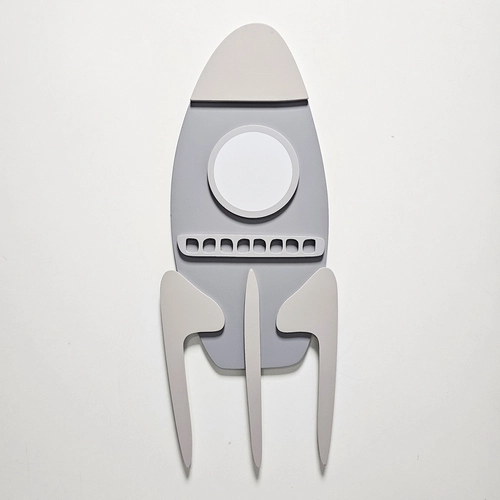 Déco murale KiddyMoon Relief 3D décoration en bois contreplaqué, fusée : gris, UNI