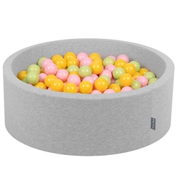 KiddyMoon Piscine à Balles ∅ 7Cm pour Bébé Carré Fabriqué En UE, gris clair:blanc/gris/menthe, 90x30cm/200 balles
