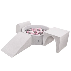 KiddyMoon Aire De Jeux en Mousse avec Rond Piscine à Balles pour Enfants, gris clair: gris/blanc/turquoise, Piscine (200 Balles) + Version 6