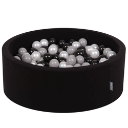 KiddyMoon Piscine à Balles ∅ 7Cm pour Bébé Rond Fabriqué En UE, noir: noir/gris/perle, 90x30cm/200 balles