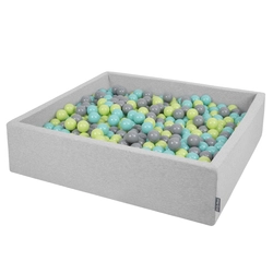 KiddyMoon Piscine À Balles Grande Carré pour Bébé, Fabriqué en UE, gris foncé:blanc-gris-noir-or, 120x30cm/300 balles
