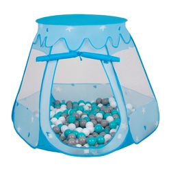 parc bébé hexagonal pliable avec balles plastiques, Gris:blanc/gris/mentha, 100 balles