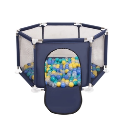 parc bébé hexagonal pliable avec balles plastiques, Bleu:babyblue/bleu/perle, 100 balles