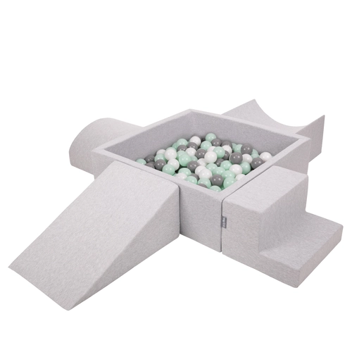 KiddyMoon Aire De Jeux en Mousse avec Carré Piscine À Balles pour Enfants, gris clair: blanc/gris/menthe, Piscine (300 Balles) + Version 5