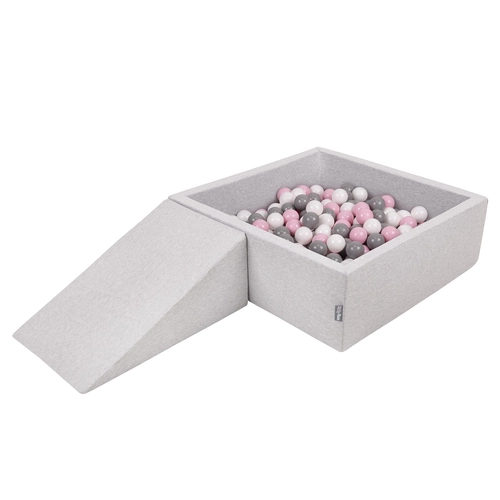 KiddyMoon Aire De Jeux en Mousse avec Carré Piscine À Balles pour Enfants, gris clair: blanc/gris/rose poudré, Piscine (200 Balles) + Pente