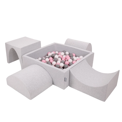 KiddyMoon Aire De Jeux en Mousse avec Carré Piscine À Balles pour Enfants, gris clair: blanc/gris/rose poudré, Piscine (300 Balles) + Version 1