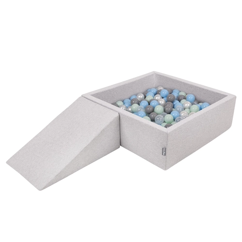 KiddyMoon Aire De Jeux en Mousse avec Carré Piscine À Balles pour Enfants, gris clair: perle/gris/transparent/babyblue/menthe, Piscine (100 Balles)+ Pente