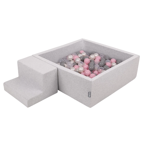 KiddyMoon Aire De Jeux en Mousse avec Carré Piscine À Balles pour Enfants, gris clair: perle/gris/transparent/rose poudré, Piscine (100 Balles) + Marches