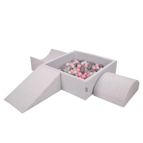 KiddyMoon Aire De Jeux en Mousse avec Carré Piscine À Balles pour Enfants, gris clair: perle/gris/transparent/rose poudré, Piscine (200 Balles) + Version 4