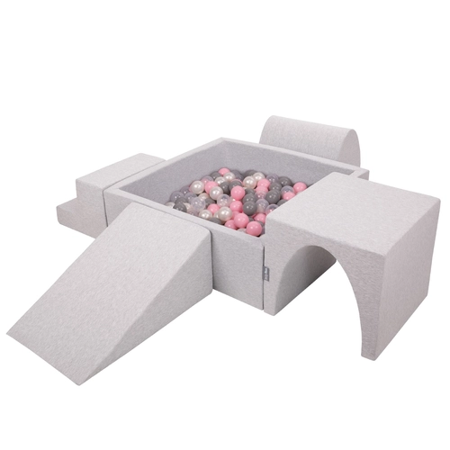 KiddyMoon Aire De Jeux en Mousse avec Carré Piscine À Balles pour Enfants, gris clair: perle/gris/transparent/rose poudré, Piscine (300 Balles) + Version 3
