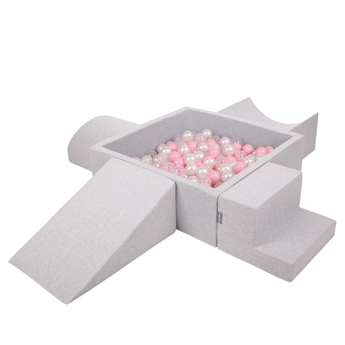 KiddyMoon Aire De Jeux en Mousse avec Carré Piscine À Balles pour Enfants, gris clair: rose poudré/perle/transparent, Piscine (300 Balles) + Version 5
