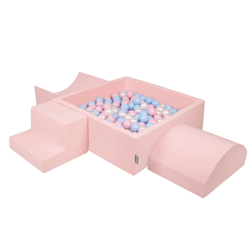 KiddyMoon Aire De Jeux en Mousse avec Carré Piscine À Balles pour Enfants, rose:babyblue/rose poudre/perle, Piscine (300 Balles) + Version 6