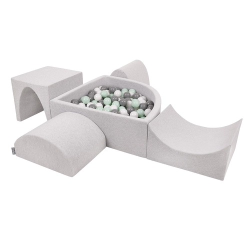 KiddyMoon Aire De Jeux en Mousse avec Quart Angulaire Piscine À Balles pour Bébé, gris clair: blanc/gris/menthe, Piscine (300 Balles) + Version 1
