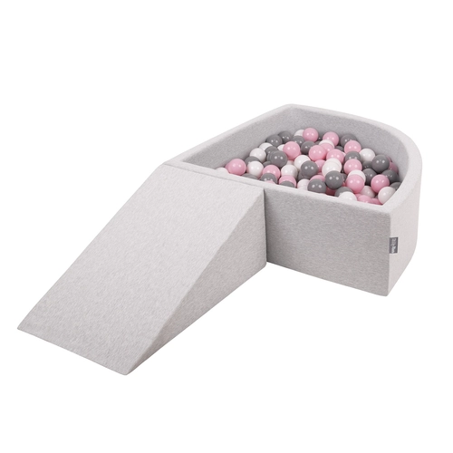 KiddyMoon Aire De Jeux en Mousse avec Quart Angulaire Piscine À Balles pour Bébé, gris clair: blanc/gris/rose poudré, Piscine (200 Balles) + Pente
