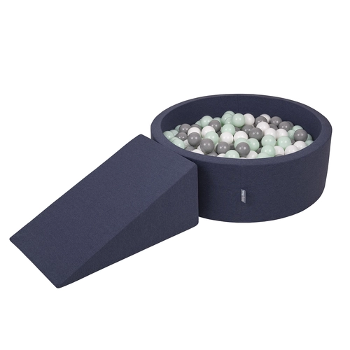 KiddyMoon Aire De Jeux en Mousse avec Rond Piscine à Balles pour Enfants, bleu foncé:blanc/gris/menthe, Piscine (100 Balles)+ Pente