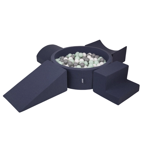 KiddyMoon Aire De Jeux en Mousse avec Rond Piscine à Balles pour Enfants, bleu foncé:blanc/gris/menthe, Piscine (200 Balles) + Version 5