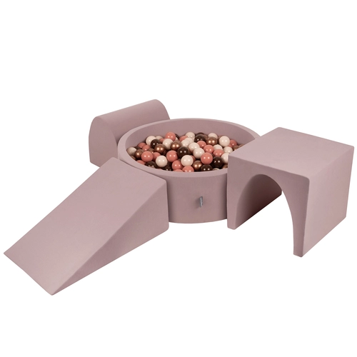 KiddyMoon Aire De Jeux en Mousse avec Rond Piscine à Balles pour Enfants, bruyère: brun/cuivre/beige pastel/saumon, Piscine (200 Balles) + Version 2