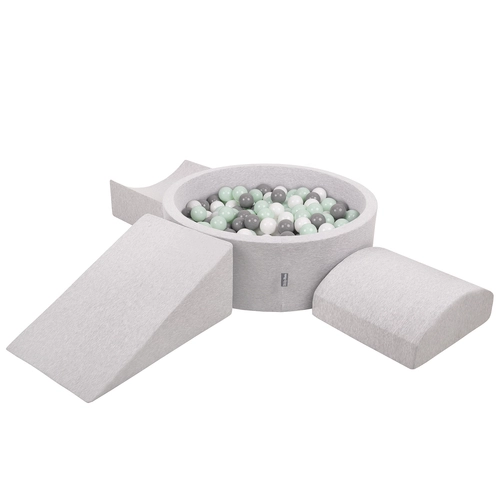 KiddyMoon Aire De Jeux en Mousse avec Rond Piscine à Balles pour Enfants, gris clair: blanc/gris/menthe, Piscine (300 Balles) + Version 4